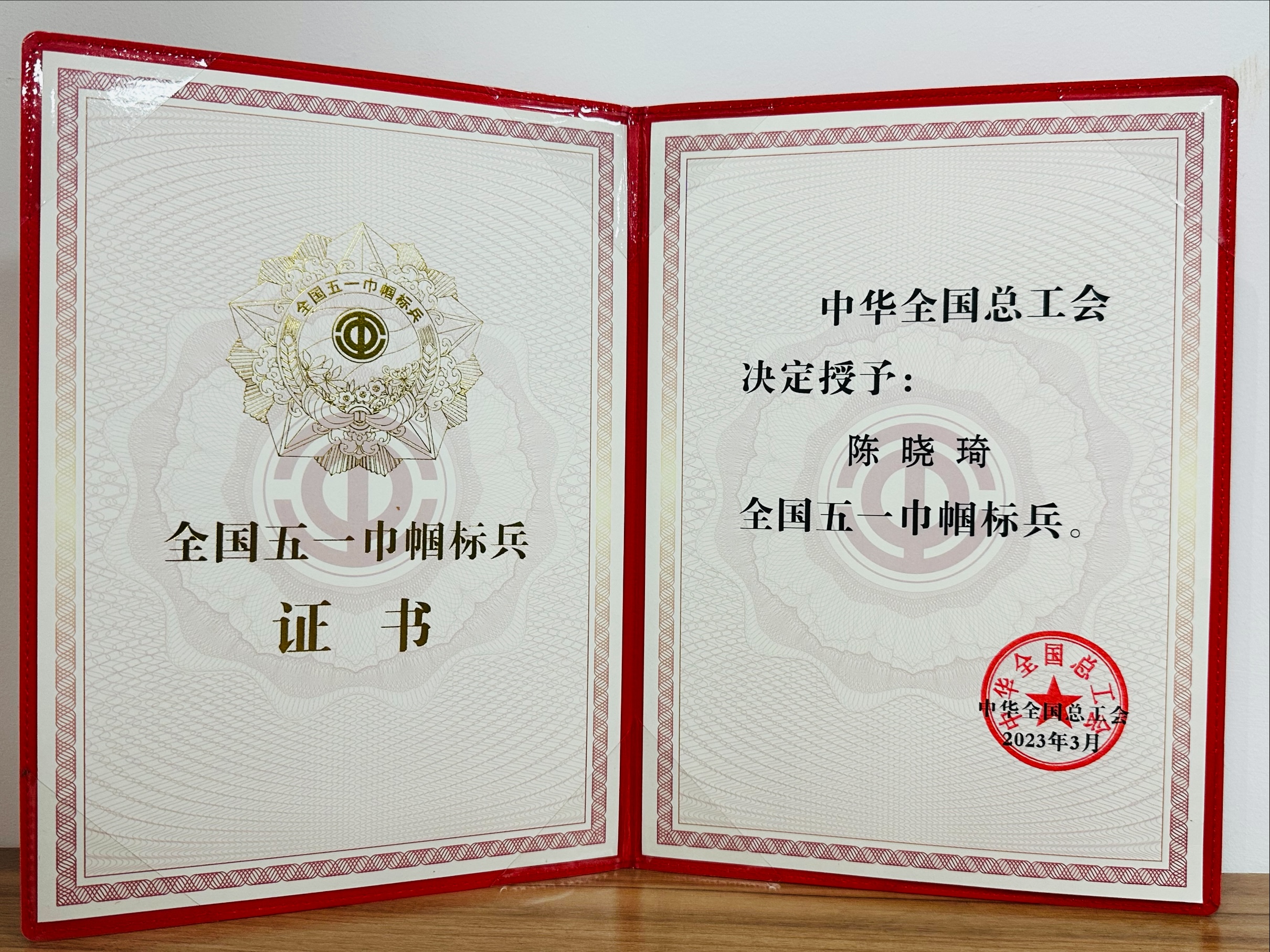 國家級:全國五一巾幗標兵-陳曉琦