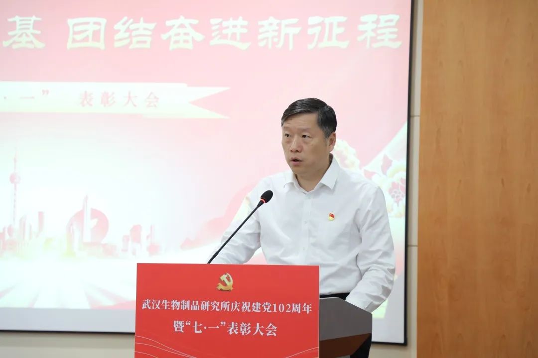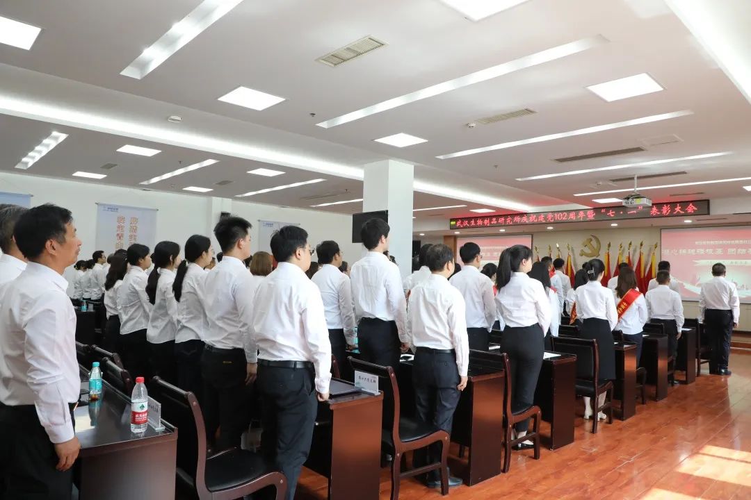 6月28日,中國生物武漢生物制品研究所召開慶祝中國共產(chǎn)黨成立102周年暨“七一”表彰大會,熱烈慶祝中國共產(chǎn)黨成立102周年,表彰公司各條戰(zhàn)線涌現(xiàn)出的先進(jìn)典型,進(jìn)一步激勵全體員工堅定信心、敢為善為,形成和衷共濟(jì)、齊心協(xié)力推動公司發(fā)展的強(qiáng)大合力。會議由黨委副書記、總經(jīng)理段凱主持,公司黨政領(lǐng)導(dǎo)班子成員、中層管理人員、黨支部書記、黨員代表、分工會主席、團(tuán)委委員、民主黨派人士代表、毓晉公司代表等110余人參會。