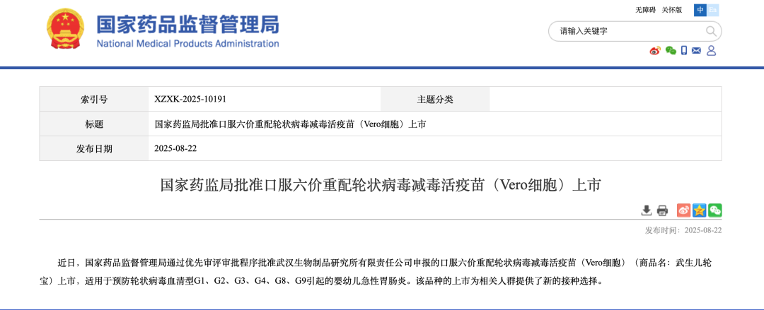 近日,國藥集團中國生物武漢生物制品研究所研制的口服六價重配輪狀病毒減毒活疫苗(Vero細胞)(商品名:武生兒輪寶®)正式獲得國家藥品監(jiān)督管理局批準上市。該產(chǎn)品是全球首款、價次最高的輪狀病毒疫苗,為我國預防用生物制品1類新藥,主要用于預防輪狀病毒引起的嬰幼兒急性胃腸炎。