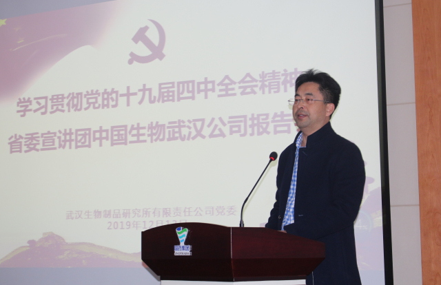 12月13日,中國生物武漢公司舉辦學習貫徹黨的十九屆四中全會精神湖北省委宣講團報告會,湖北省委宣講團成員、華中農(nóng)業(yè)大學馬克思主義學院院長梁偉軍同志作宣講報告,武漢公司領導班子成員、黨委委員、中層管理人員、黨支部書記及黨員代表共160余人參加宣講報告會。