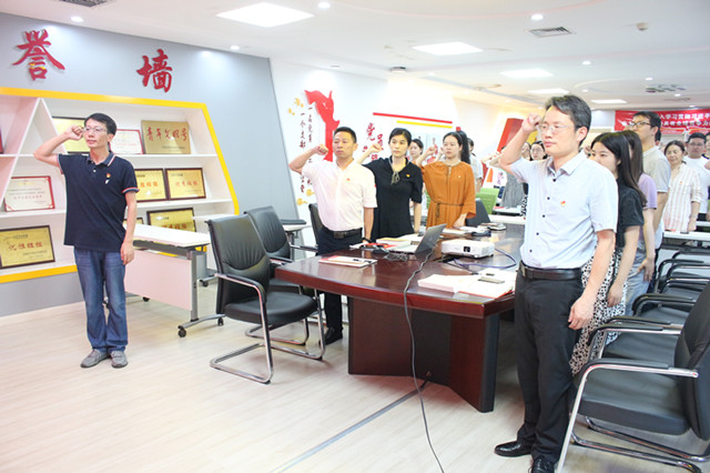 為慶祝中國共產(chǎn)黨成立102周年,弘揚偉大建黨精神,全體黨員在第五黨支部書記解庭波同志的帶領(lǐng)下,面向黨旗,莊嚴(yán)宣誓,在入黨誓詞中堅定理想信念,不斷叩問初心、守護初心,把對黨忠誠的錚錚誓言貫穿工作各方面、全過程。