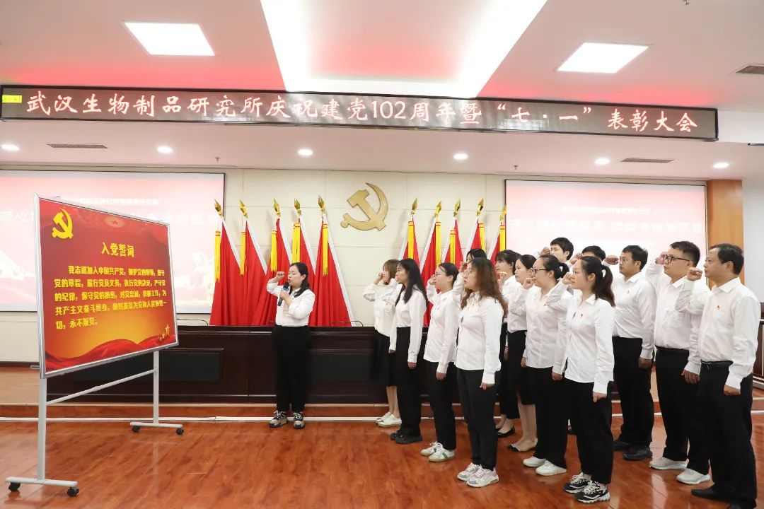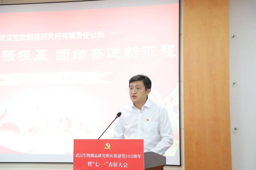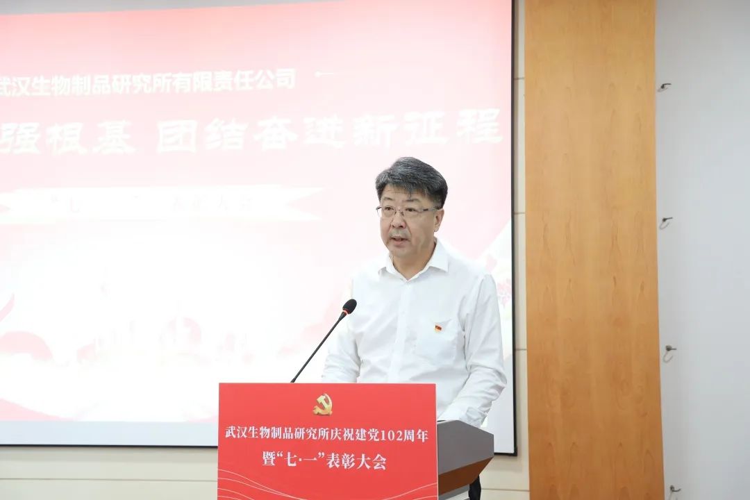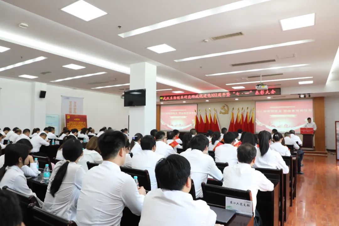 6月28日,中國生物武漢生物制品研究所召開慶祝中國共產(chǎn)黨成立102周年暨“七一”表彰大會,熱烈慶祝中國共產(chǎn)黨成立102周年,表彰公司各條戰(zhàn)線涌現(xiàn)出的先進(jìn)典型,進(jìn)一步激勵全體員工堅定信心、敢為善為,形成和衷共濟(jì)、齊心協(xié)力推動公司發(fā)展的強(qiáng)大合力。會議由黨委副書記、總經(jīng)理段凱主持,公司黨政領(lǐng)導(dǎo)班子成員、中層管理人員、黨支部書記、黨員代表、分工會主席、團(tuán)委委員、民主黨派人士代表、毓晉公司代表等110余人參會。