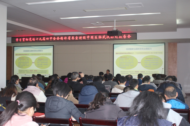 12月13日,中國生物武漢公司舉辦學習貫徹黨的十九屆四中全會精神湖北省委宣講團報告會,湖北省委宣講團成員、華中農(nóng)業(yè)大學馬克思主義學院院長梁偉軍同志作宣講報告,武漢公司領導班子成員、黨委委員、中層管理人員、黨支部書記及黨員代表共160余人參加宣講報告會。